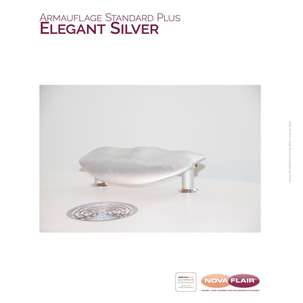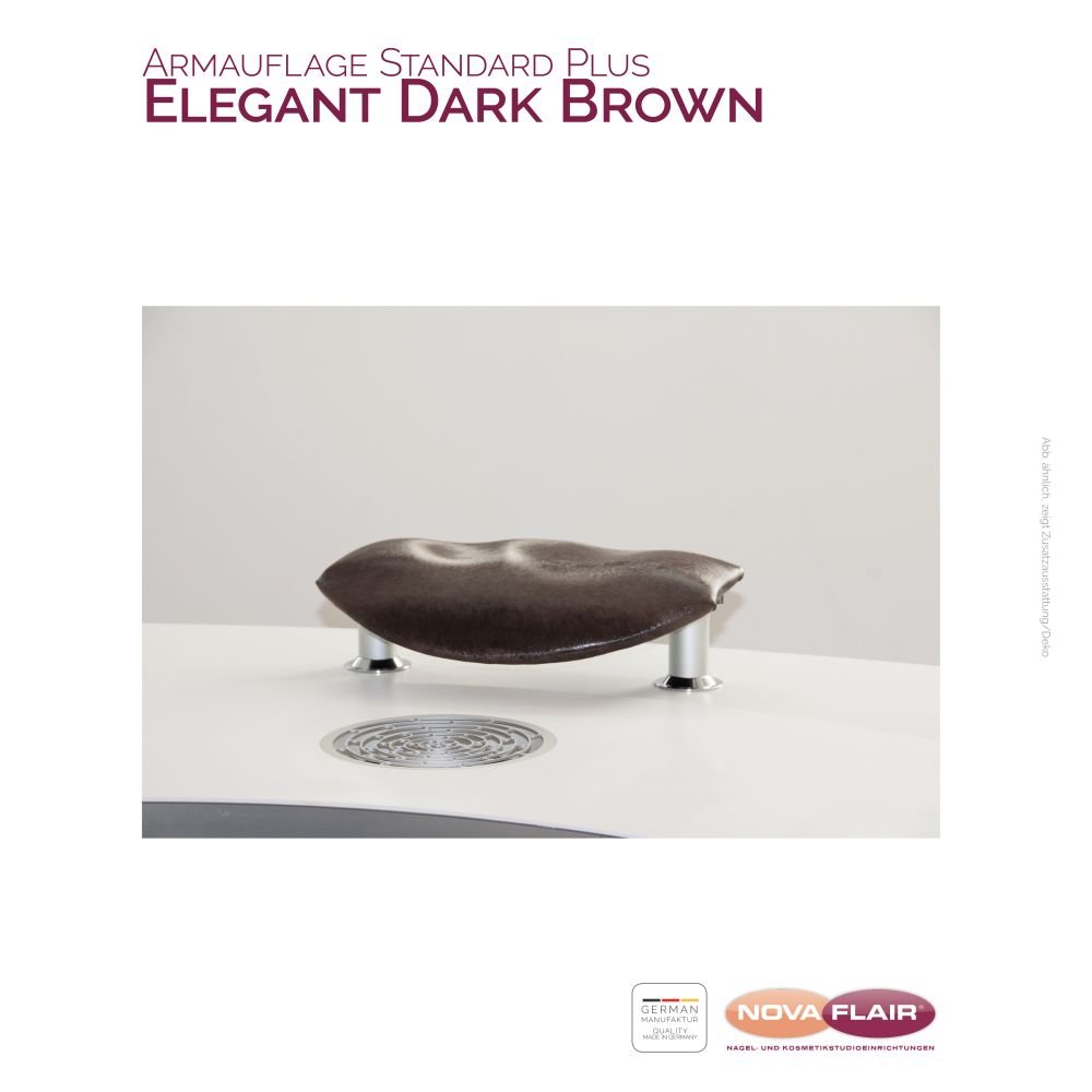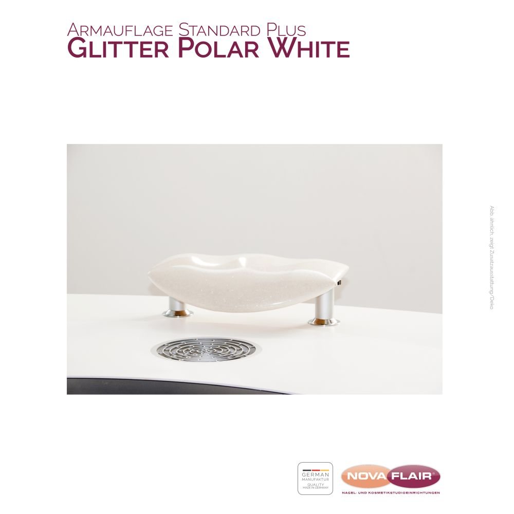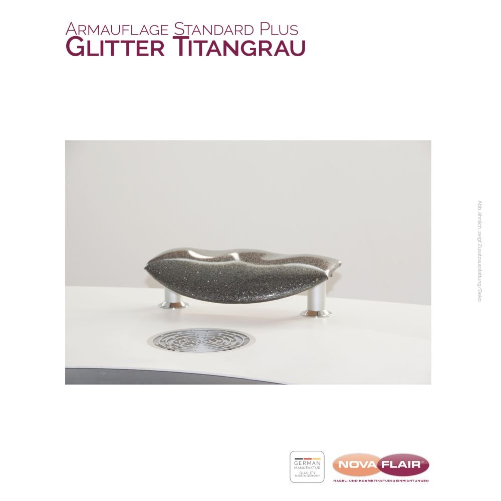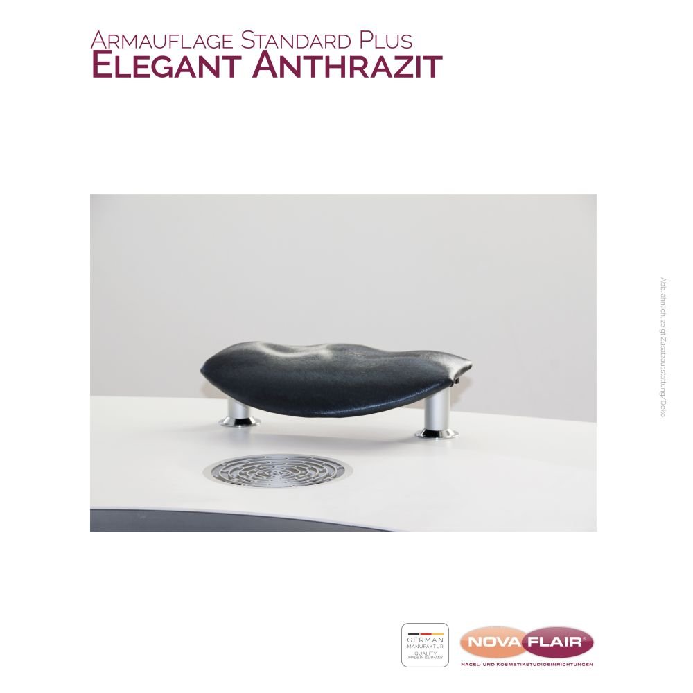 Bracciolo Standard Plus, morbidamente imbottito e foderato in pelle sintetica delicata sulla pelle. E' sostenuto da distanziali in alluminio cromato. La versione Plus, rispetto a quella Standard, ha un cuscino più grande che si inclina in avanti verso la griglia di ventilazione.