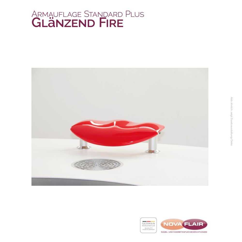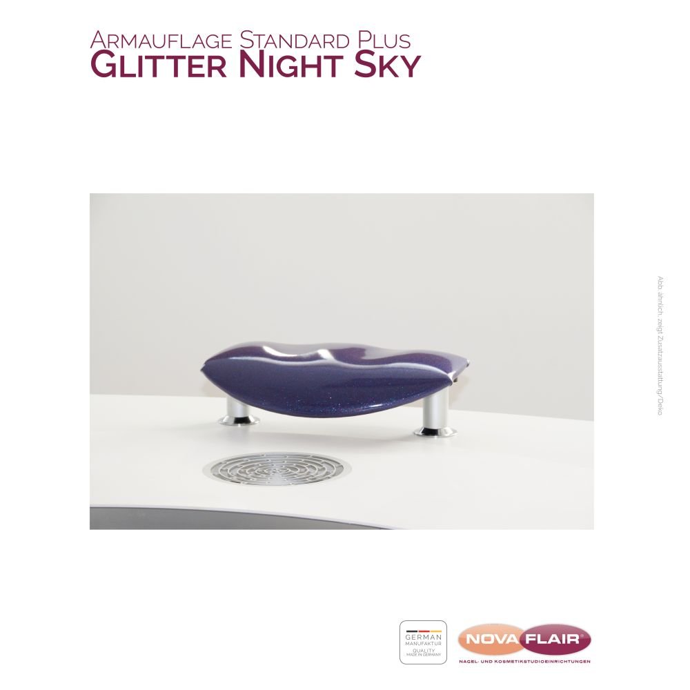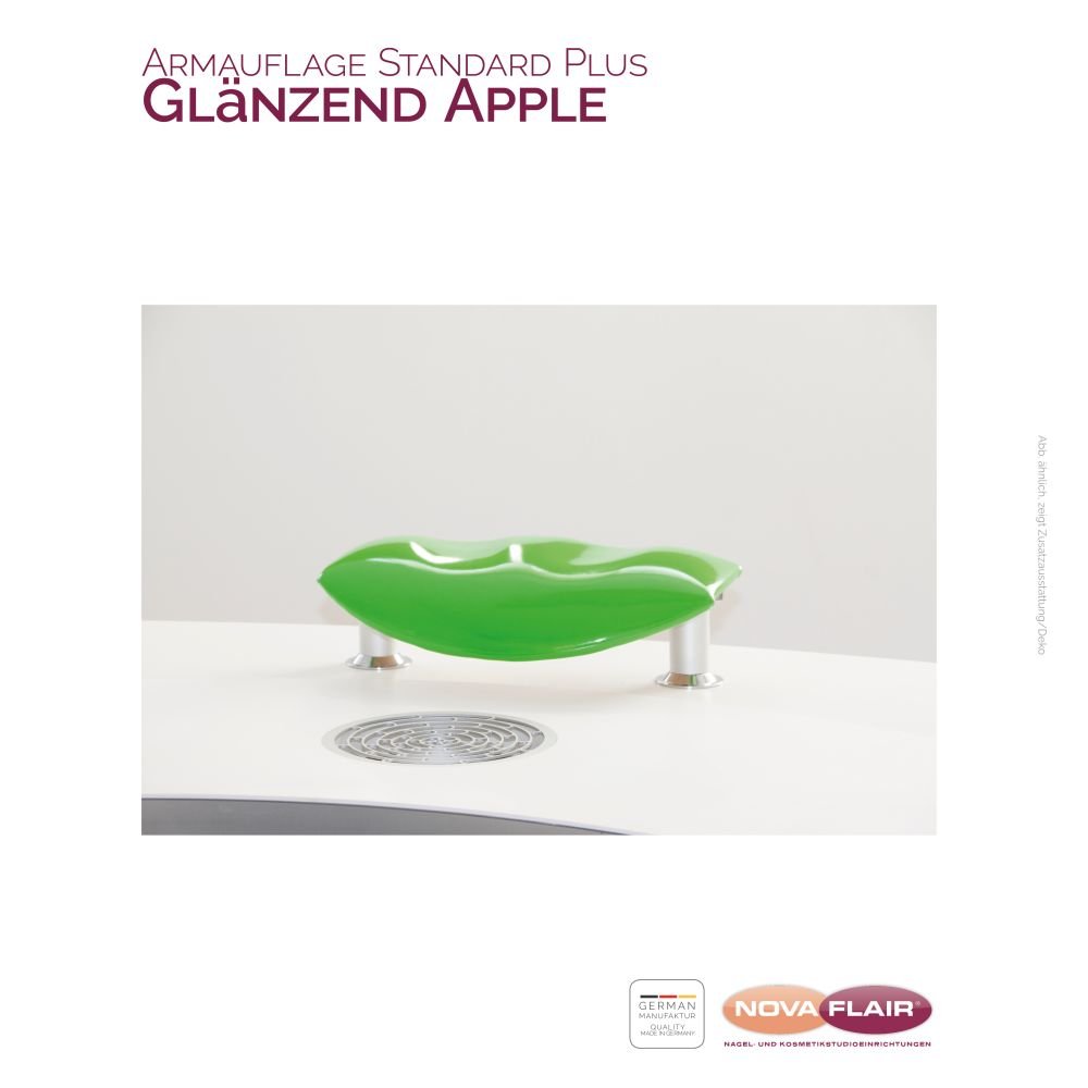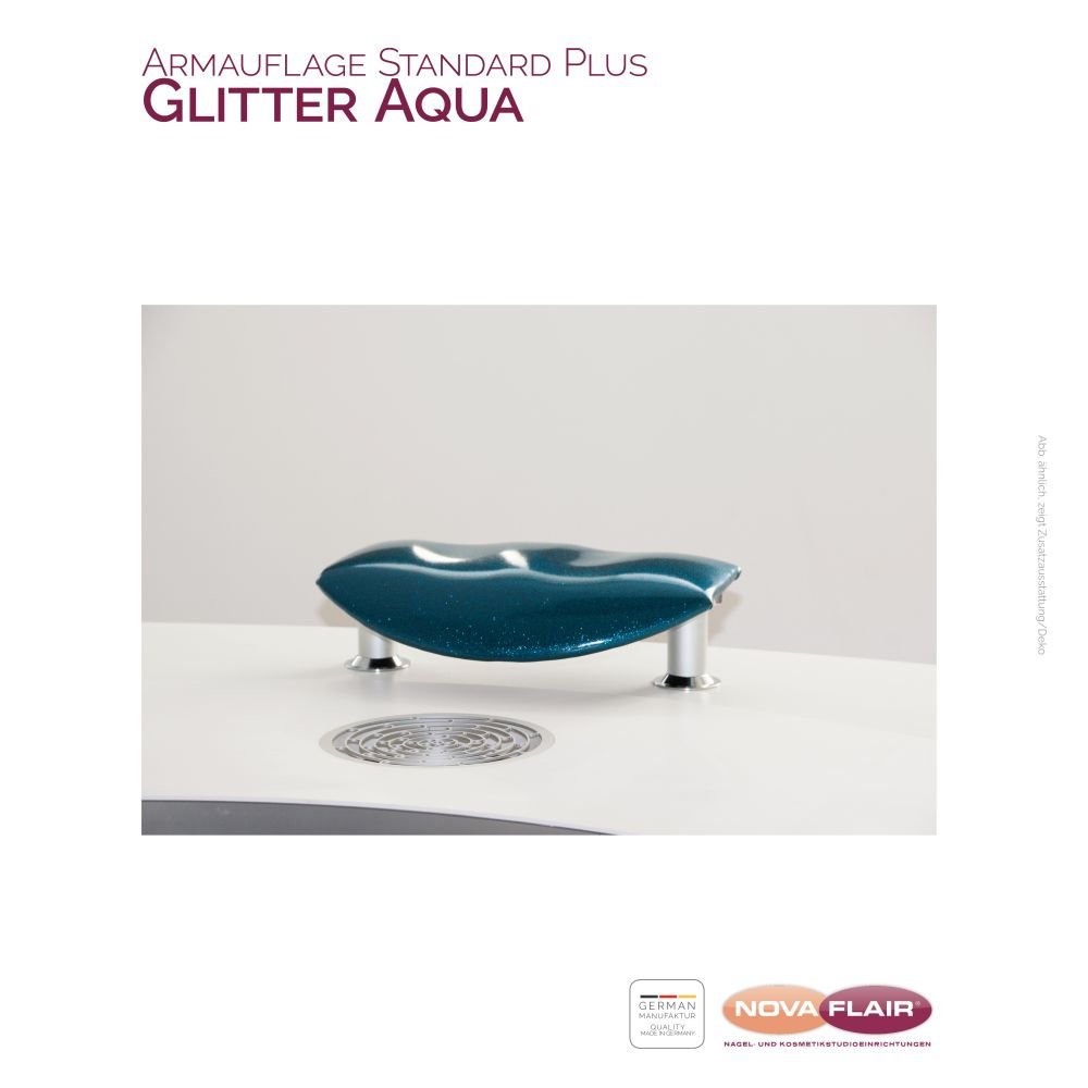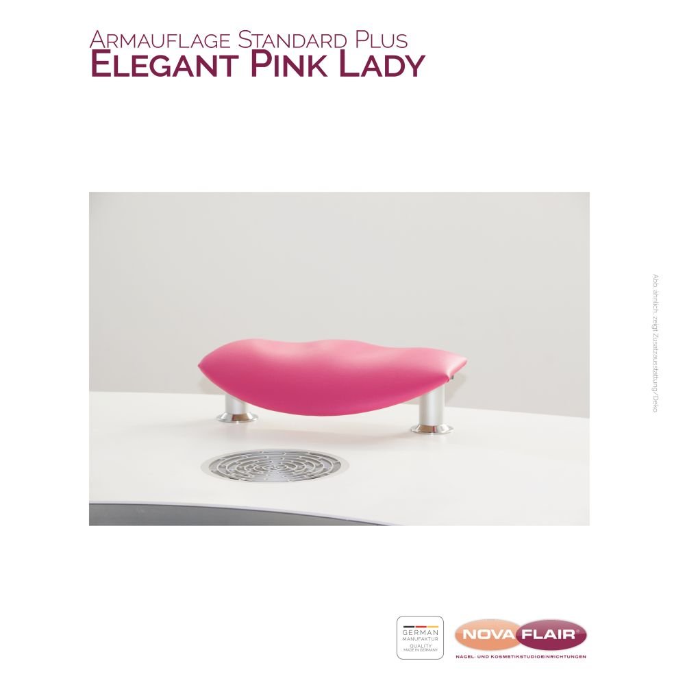 Bracciolo Standard Plus, morbidamente imbottito e foderato in pelle sintetica delicata sulla pelle. E' sostenuto da distanziali in alluminio cromato. La versione Plus, rispetto a quella Standard, ha un cuscino più grande che si inclina in avanti verso la griglia di ventilazione.