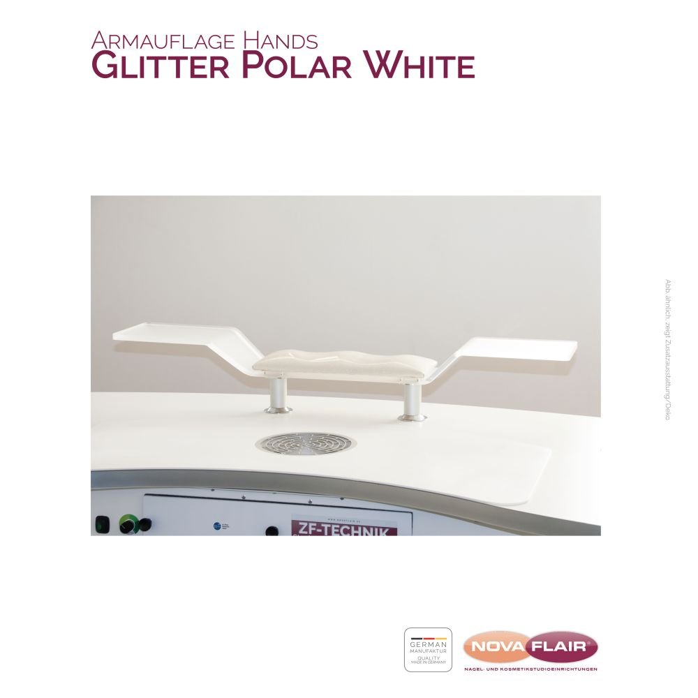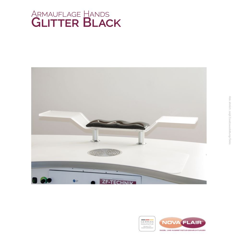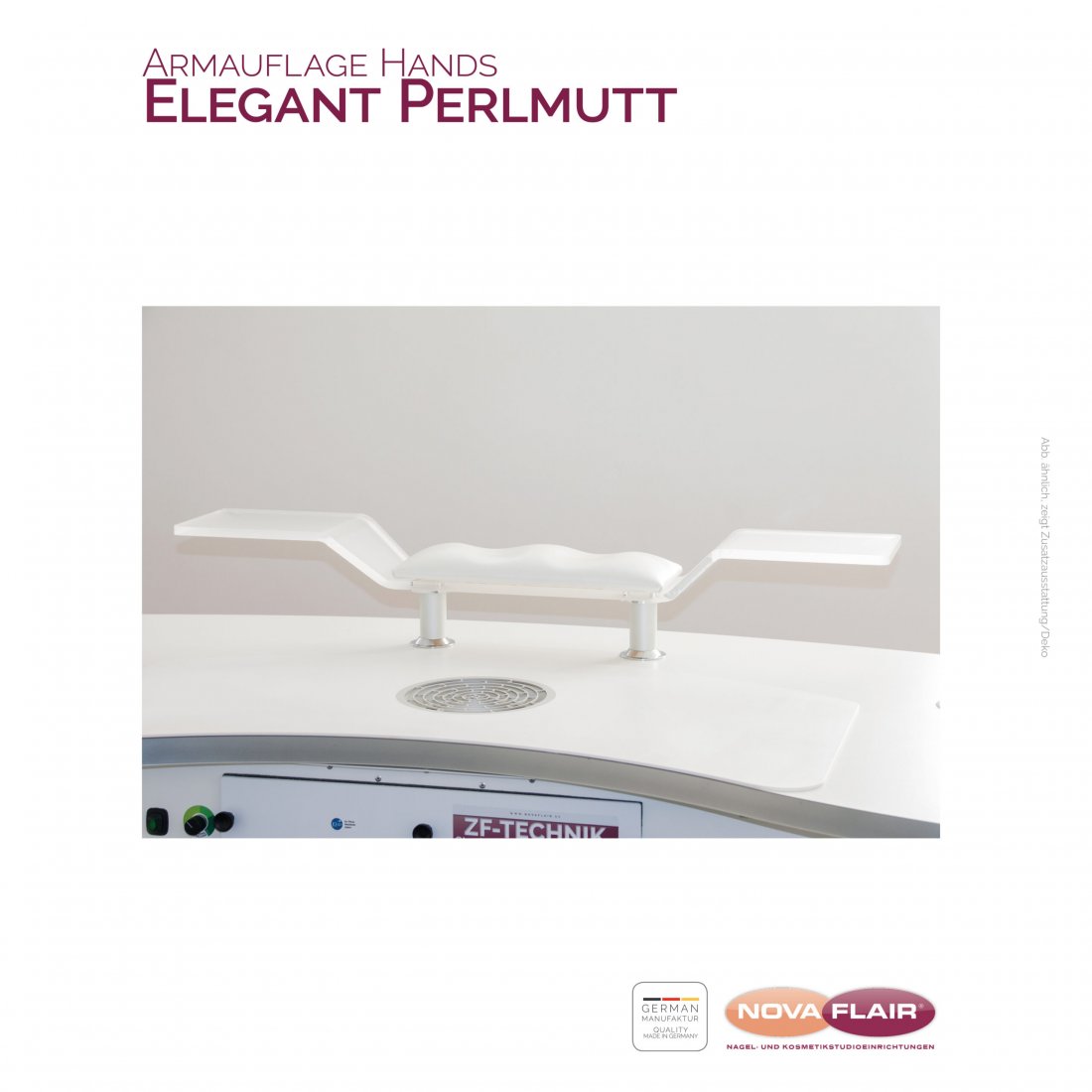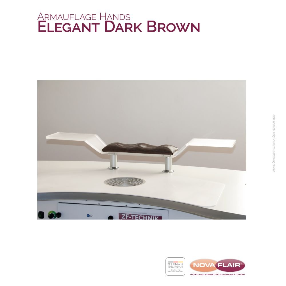 Bracciolo dalla forma ergonomica imbottito e foderato di pelle sintetica resistente agli strappi e delicata sulla pelle. Presenta dei supporti in vetro acrilico satinato da 1 cm , appositamente adattato per 2 dispositivi di fotopolimerizzazione.