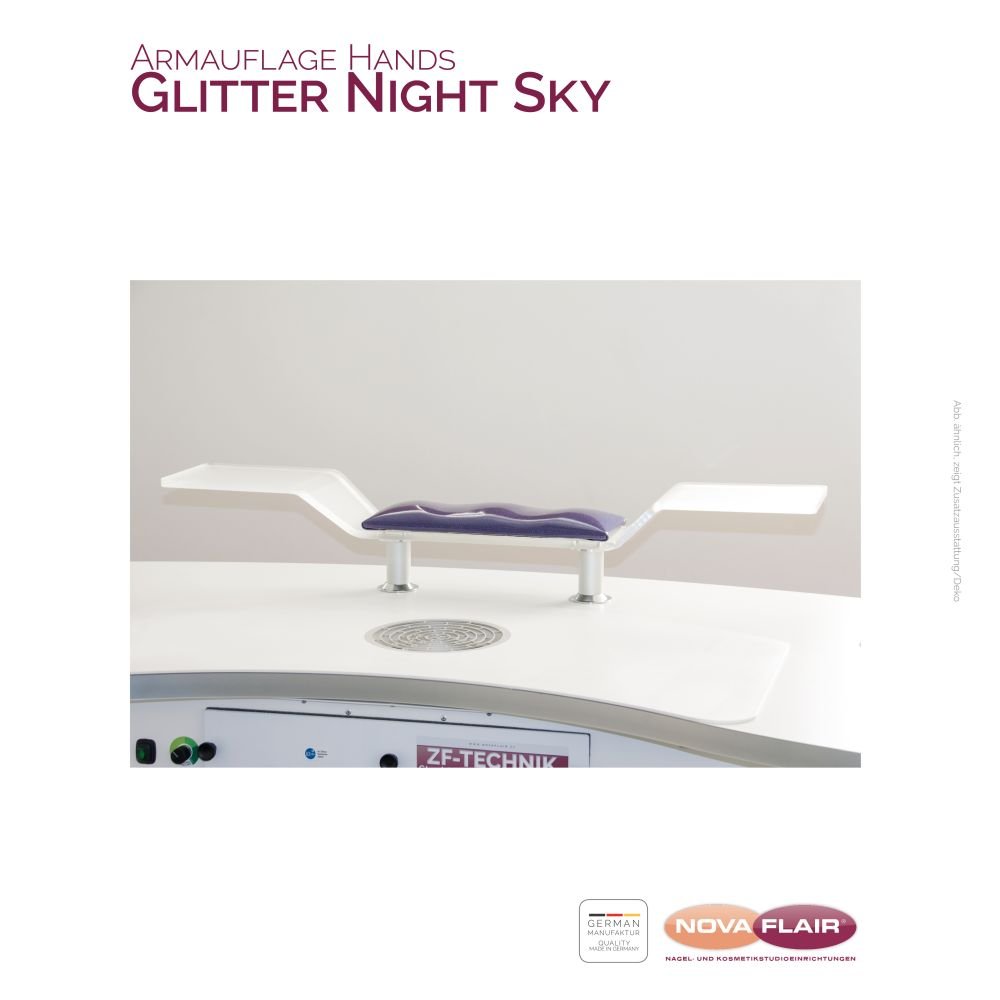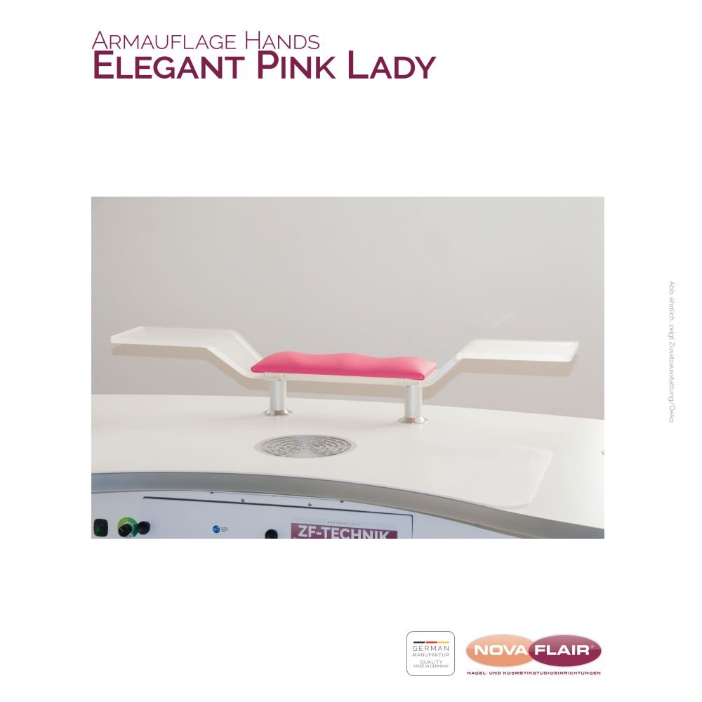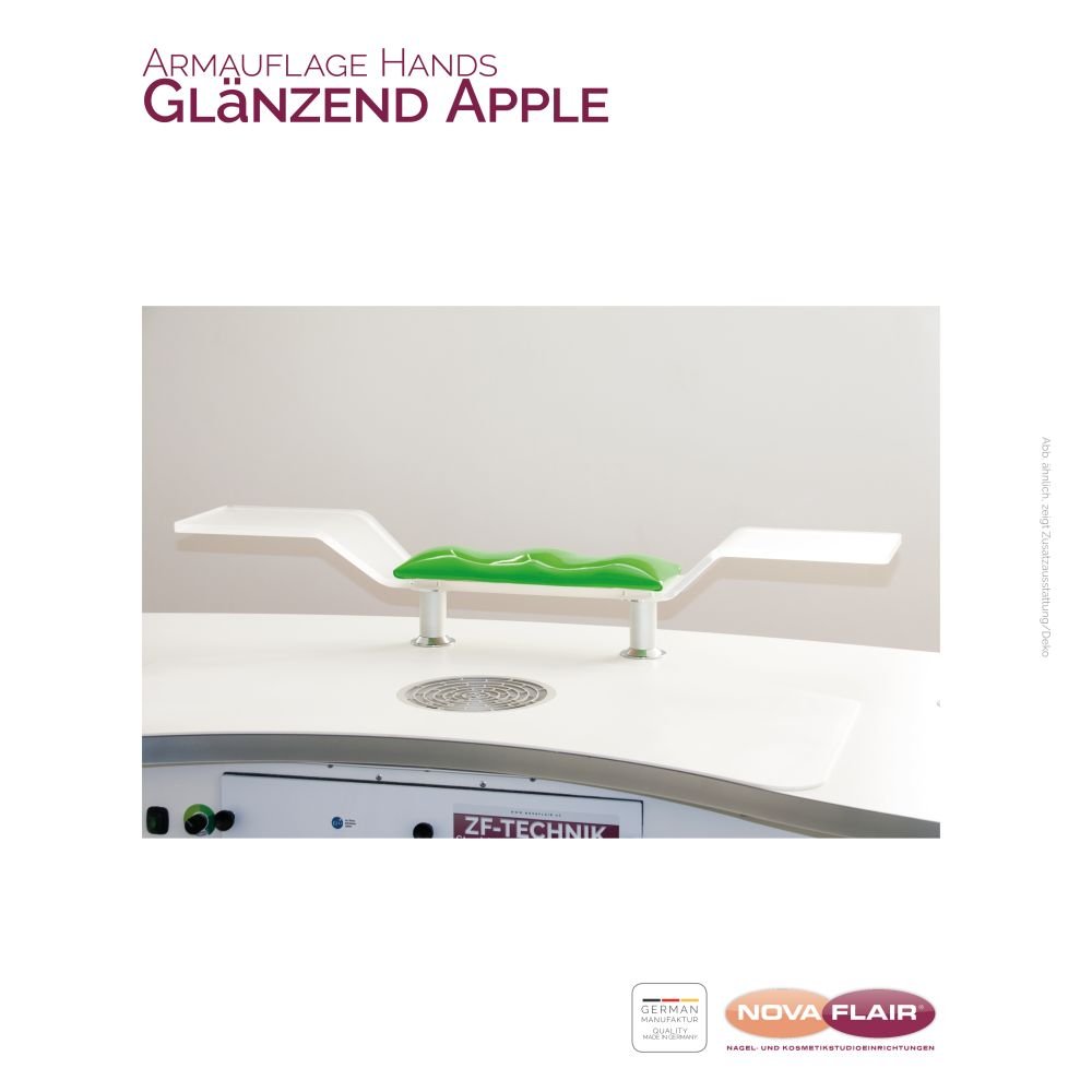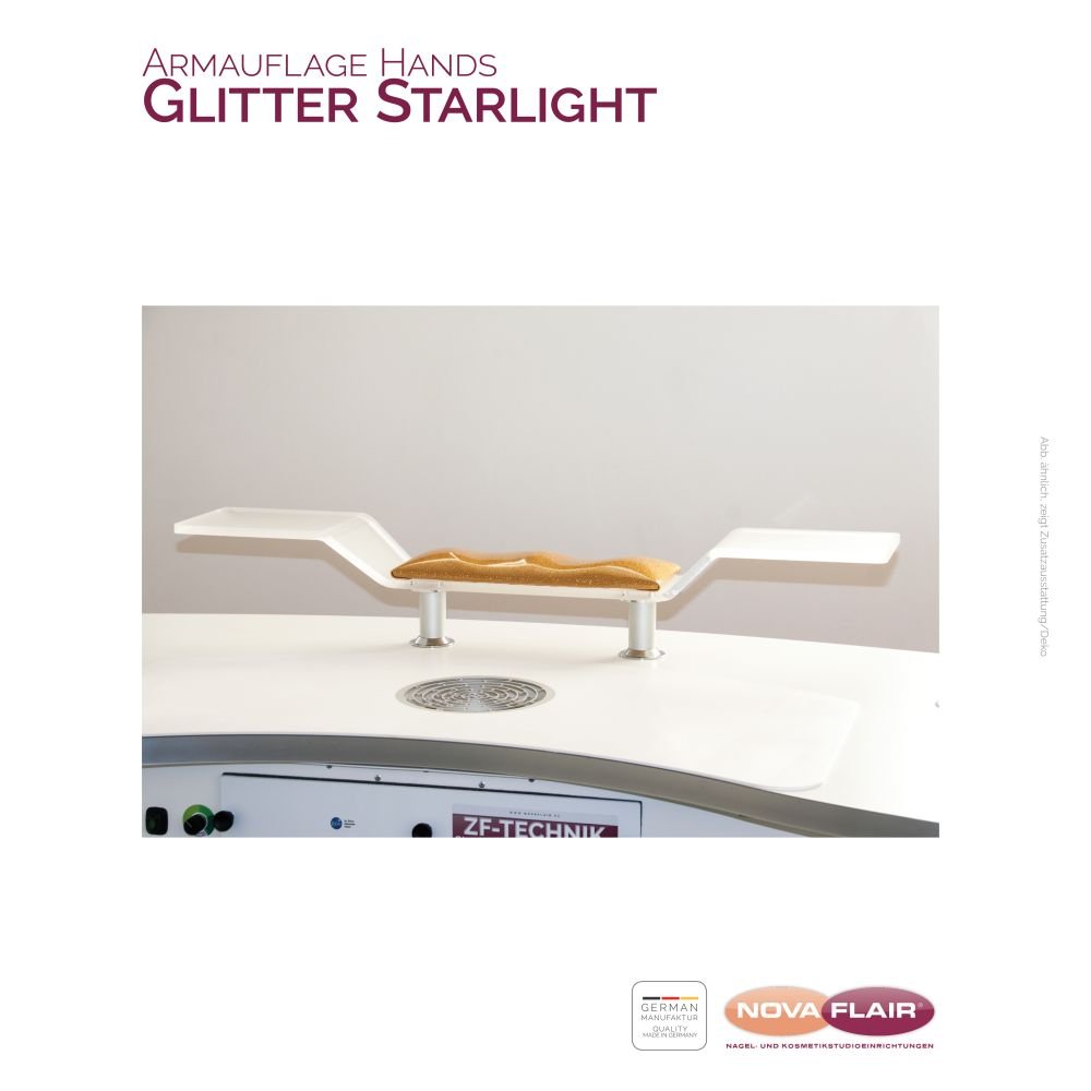 Bracciolo dalla forma ergonomica imbottito e foderato di pelle sintetica resistente agli strappi e delicata sulla pelle. Presenta dei supporti in vetro acrilico satinato da 1 cm , appositamente adattato per 2 dispositivi di fotopolimerizzazione.