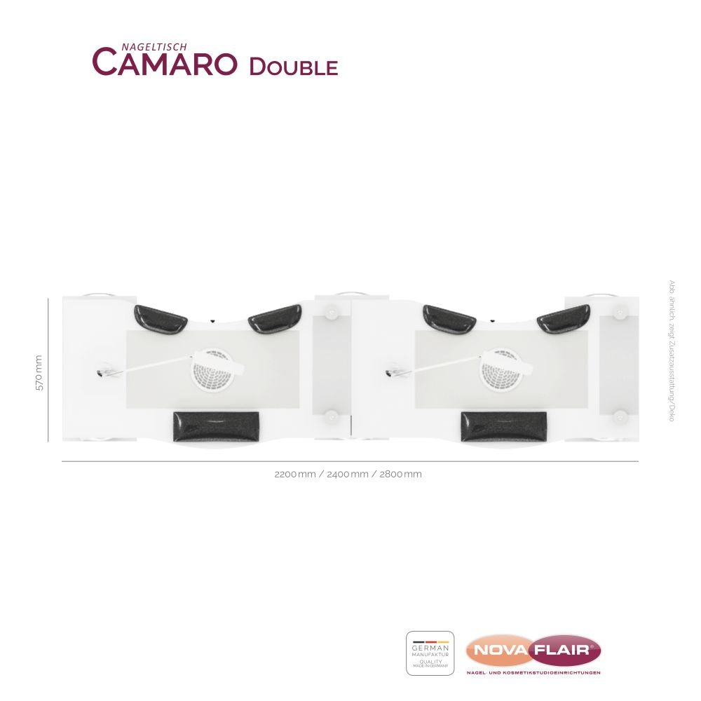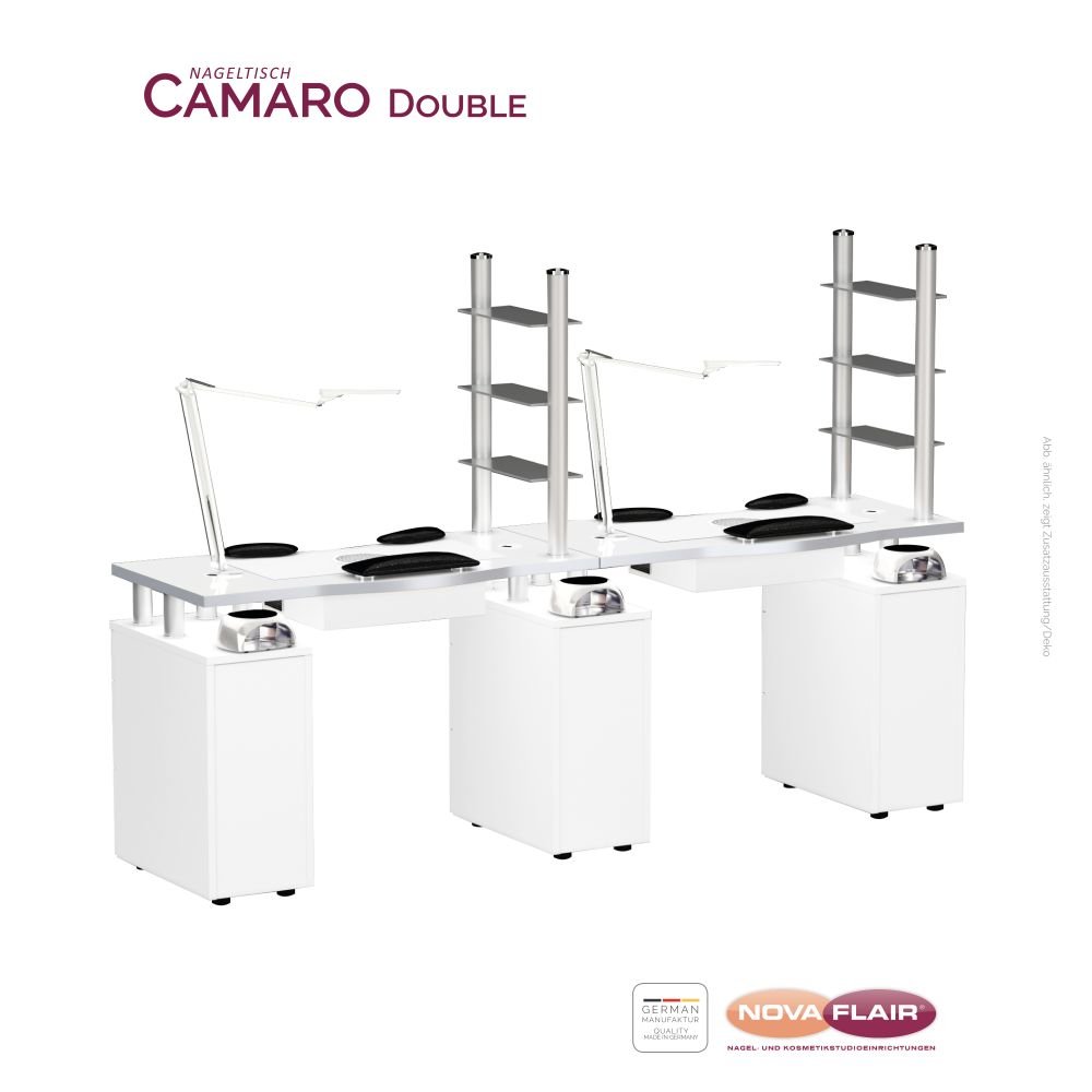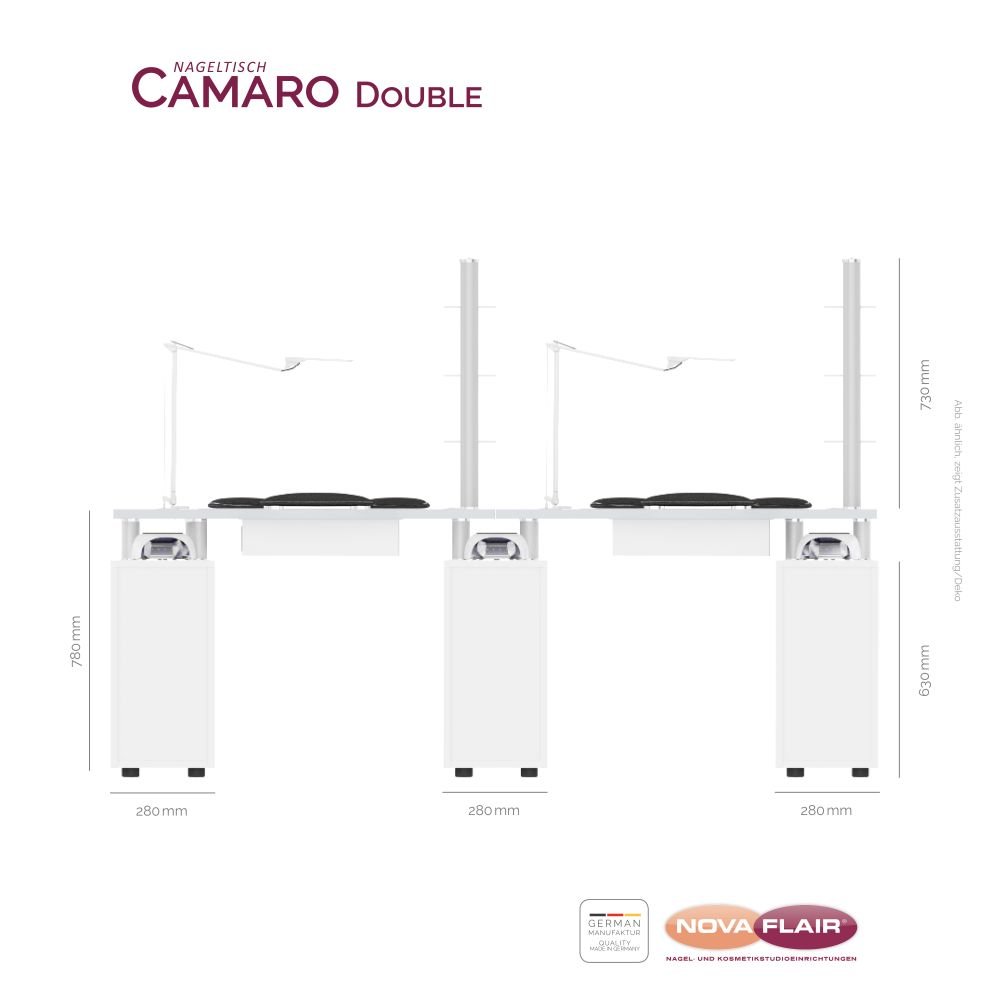 • Ripiano a mendole in alluminio con 3 ripiani in vetro satinato - è adatto per la presentazione diretta dei prodotti sulla postazione nails. Lato liberamente selezionabile (destro o sinistro).