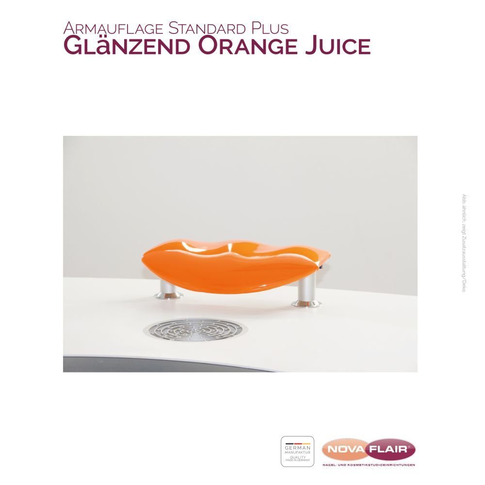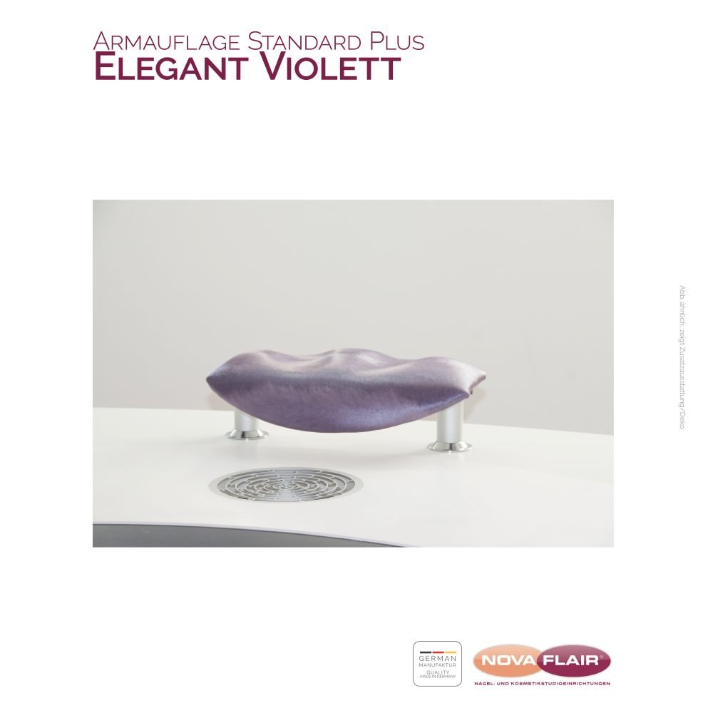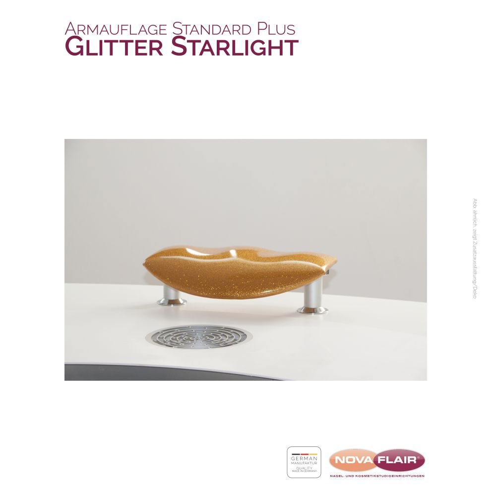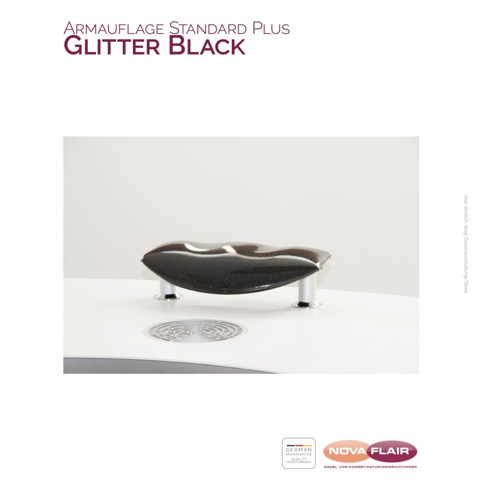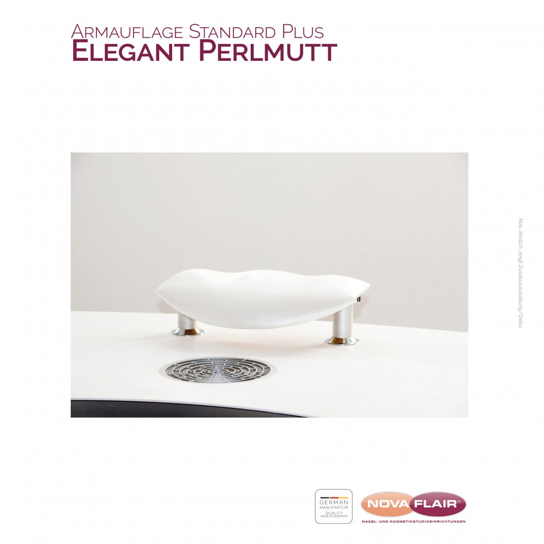 Bracciolo Standard Plus, morbidamente imbottito e foderato in pelle sintetica delicata sulla pelle. E' sostenuto da distanziali in alluminio cromato. La versione Plus, rispetto a quella Standard, ha un cuscino più grande che si inclina in avanti verso la griglia di ventilazione.